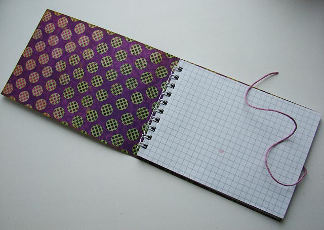 Ну и сделала застежку, вдруг в блокноте будет секретная информация)))) Застежка простая, и сделана из металлического значка AC Flair (Love), на который наматывается бечевка, закрепленная на задней обложке.
