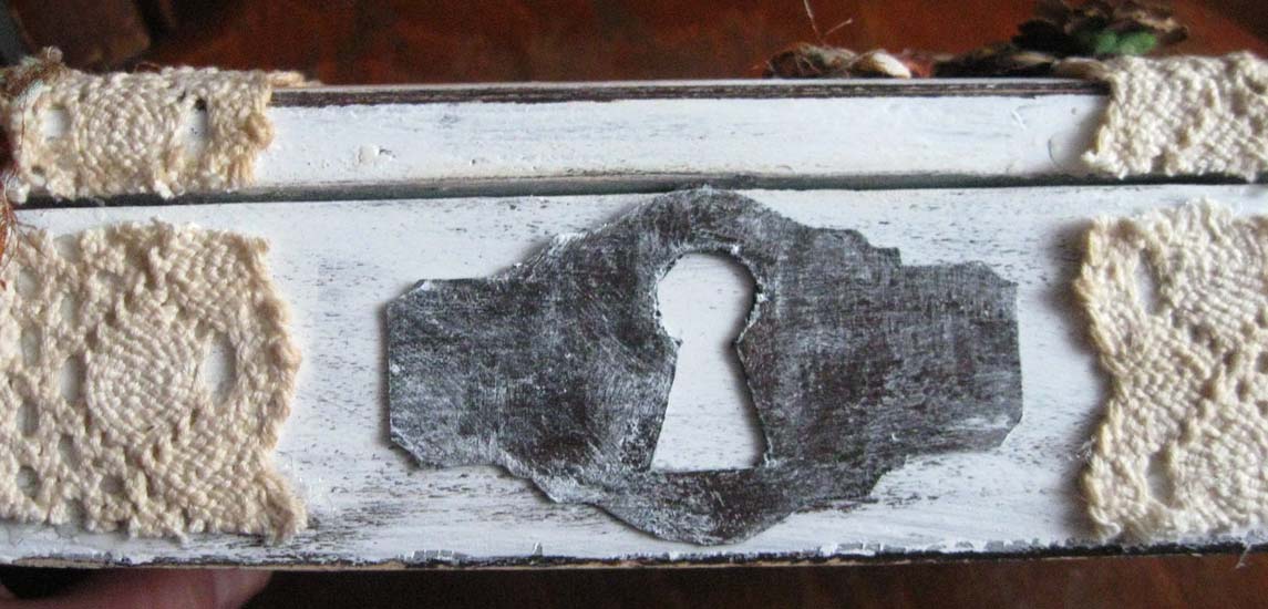 К торцевой части приклеила замочную скважину, ее я вырезала из картона и красила краской.