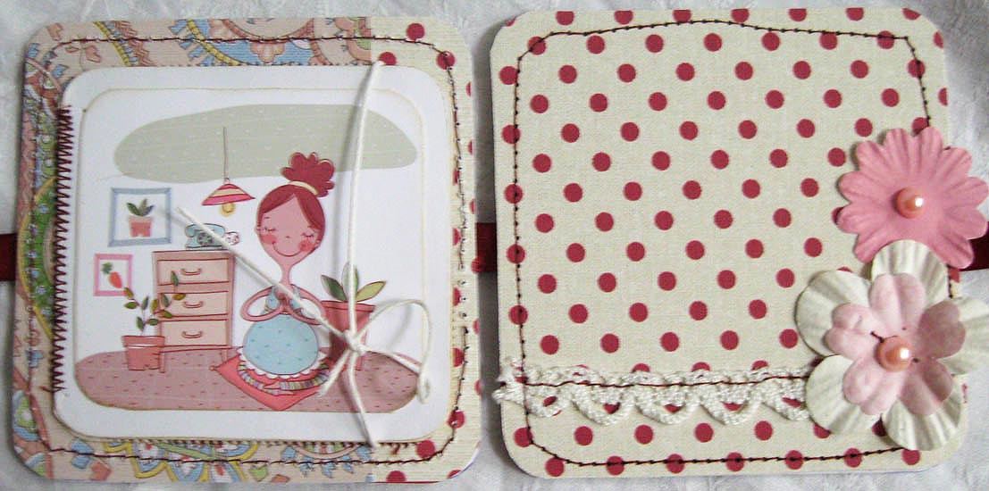 В работе использовала бумагу Making Memories и Prima «Angelique Collection» — Cherub, цветы Prima, держатель для фото Creative Impressions «Turn mounts» — Primary, штампы, кружево, половинки жемчужин — светло-розовые.