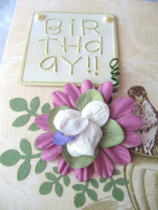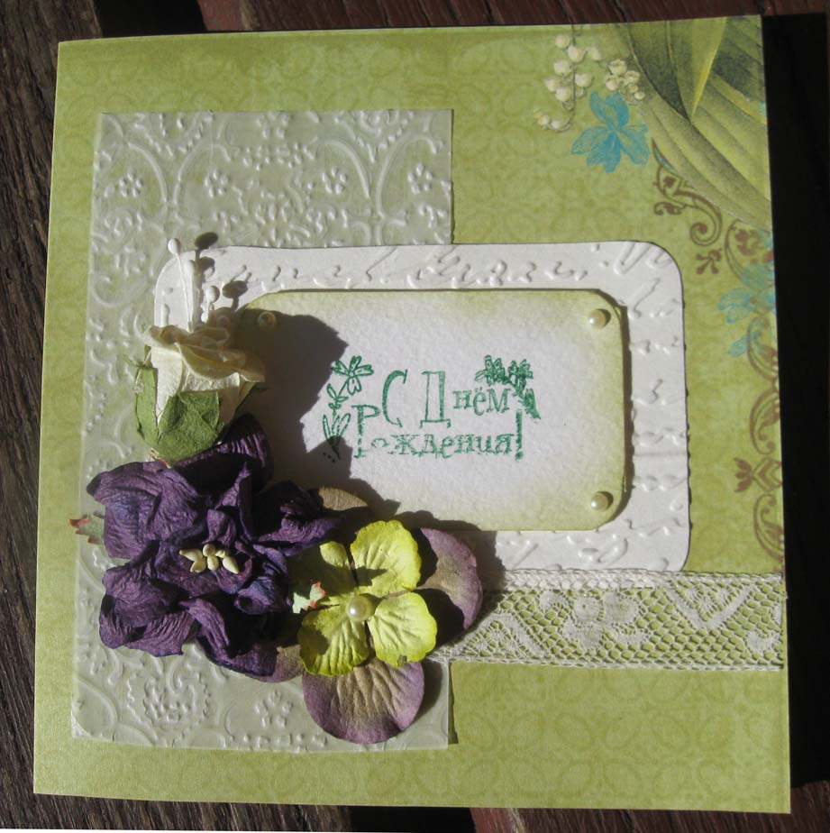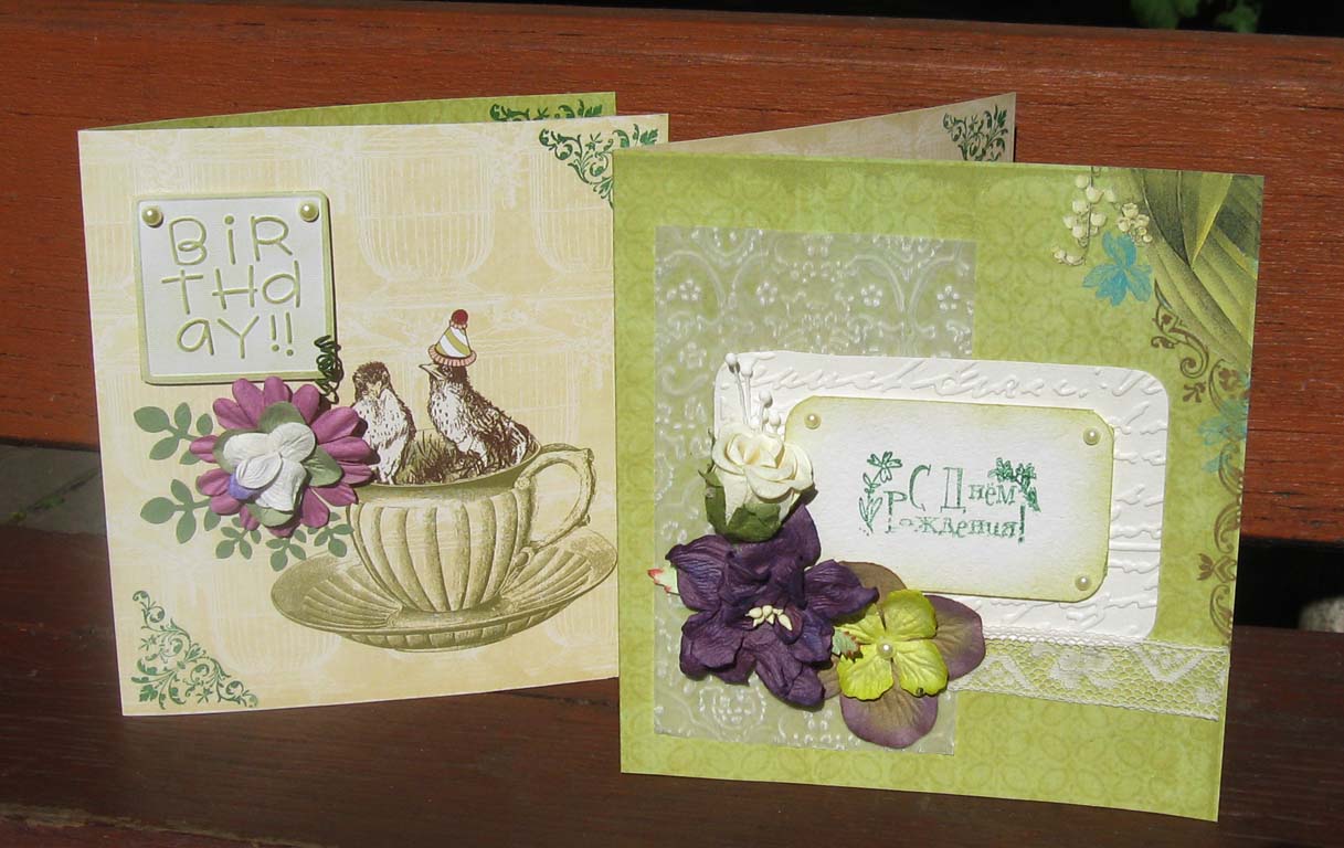Когда я получила лист Websters Pages «Garden Gala» — Tea Time, я честно говоря растерялась, обе стороны меня привлекали, обе хотелось использовать, тогда я решла схитрить и сделать две открытки. Для одной я использовала лицевую часть с птицами, а для второй изнанку, если так можно выразиться.