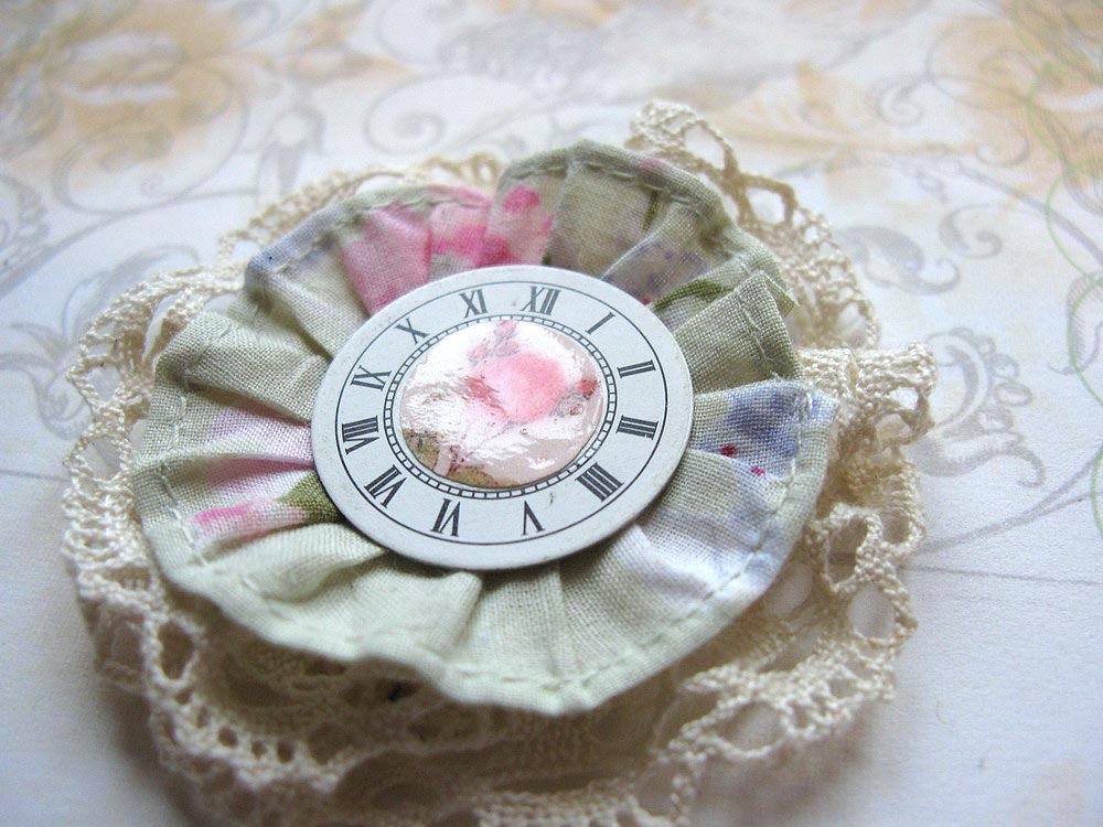 Как видите, одной брошкой не обошлось, получилось три, думаю, что будут еще... Для всех брошек я использовала старые часы, благо их у меня много, накупила на блошином рынке. В первой на циферблат я наклеила изображение розочки, распечатанное на принтере.