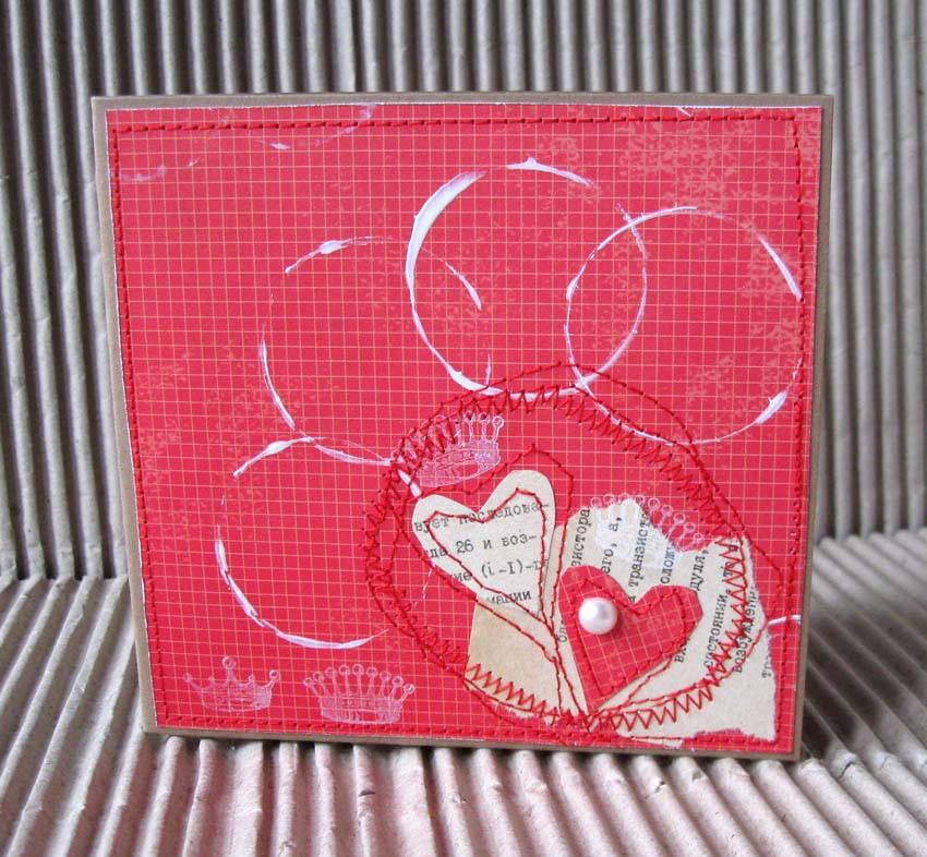 Саму бумагу немного красила белым акрилом, использовала книжные листы из методичек политеха) бордюрный дырокол, полужемчужинки. С помощью машинной строчки написала «ЛЮ»
