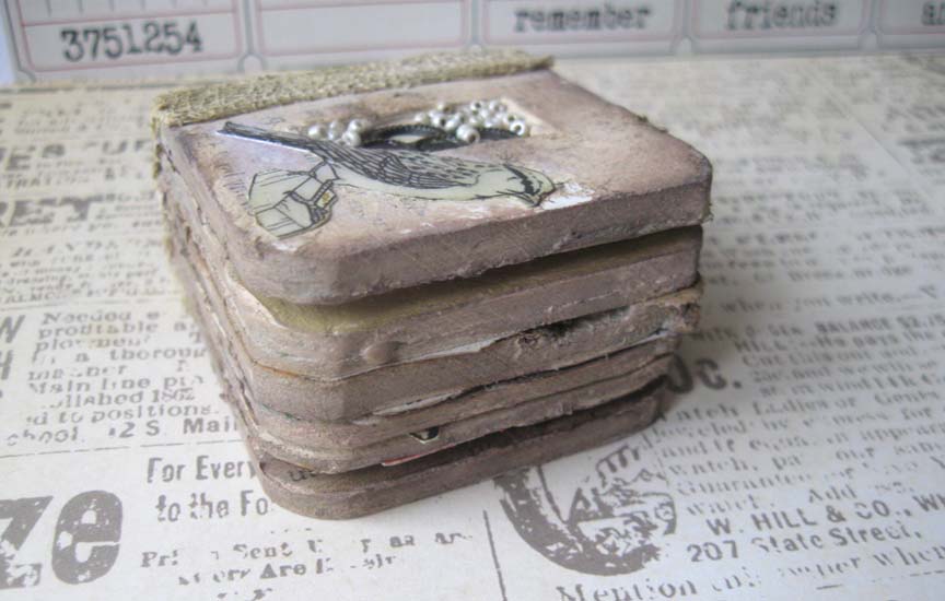 В обложке выпиливала углубление, куда приклеила на глосси-акцент бисер и кусочек метлической пряжки, украсила птичкой, вырезанной из листа Old Paper и покрыла тоже глосси-акцентом.