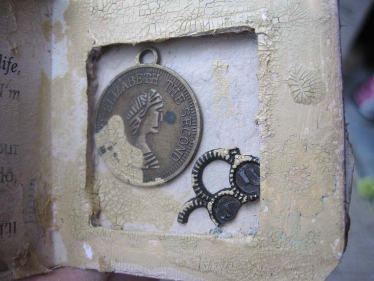 Внутри приклеила монетку и кусочек пряжк, а саму рамку вокруг покрыла кракелюром antique linen