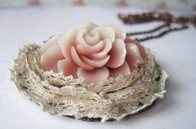 Потом клеила три яруса кружева и в центре цветок. Кружево тоже тонировала чернилами