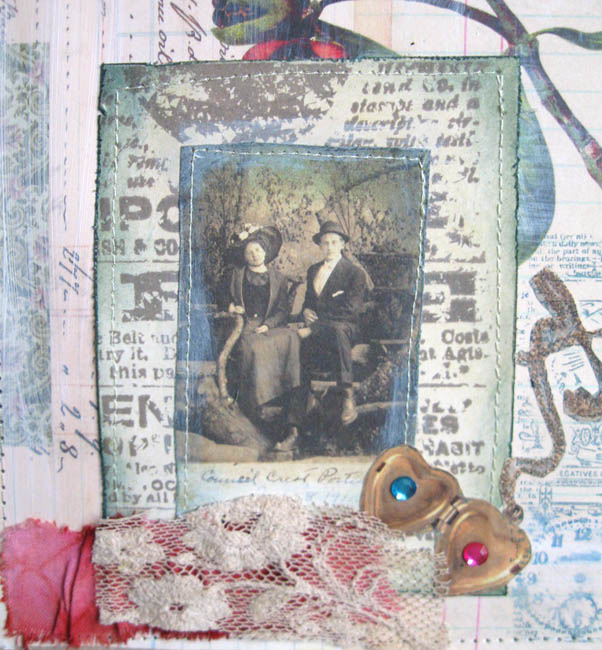 Лист 7Gypsies — Flora я не представляла себе ни в открытках, ни в страничках, у меня сразу идея была выделит именно это дерево. Хотелось его расцвести розами, но потом пришла мысль сделать не просто элемент интерьера, а коллаж со своей историей. История семейная. Про любовь, из которой выросло это дерево. Семейное фото нашла в книжке специальной с картинками для коллажа «HOTP» — Vintage ephemera, подложка под картинкой обратная сторона бумаги TGC — Old Paper