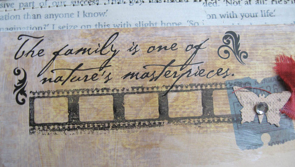 Два сердца из той же книжечки с картинками опоясывают это дерево и дают ему расти, а штампик Tim Holtz — Photograph, говорит о том, что «Все пройде и печаль и радость, а любовь, не проходит-нет»