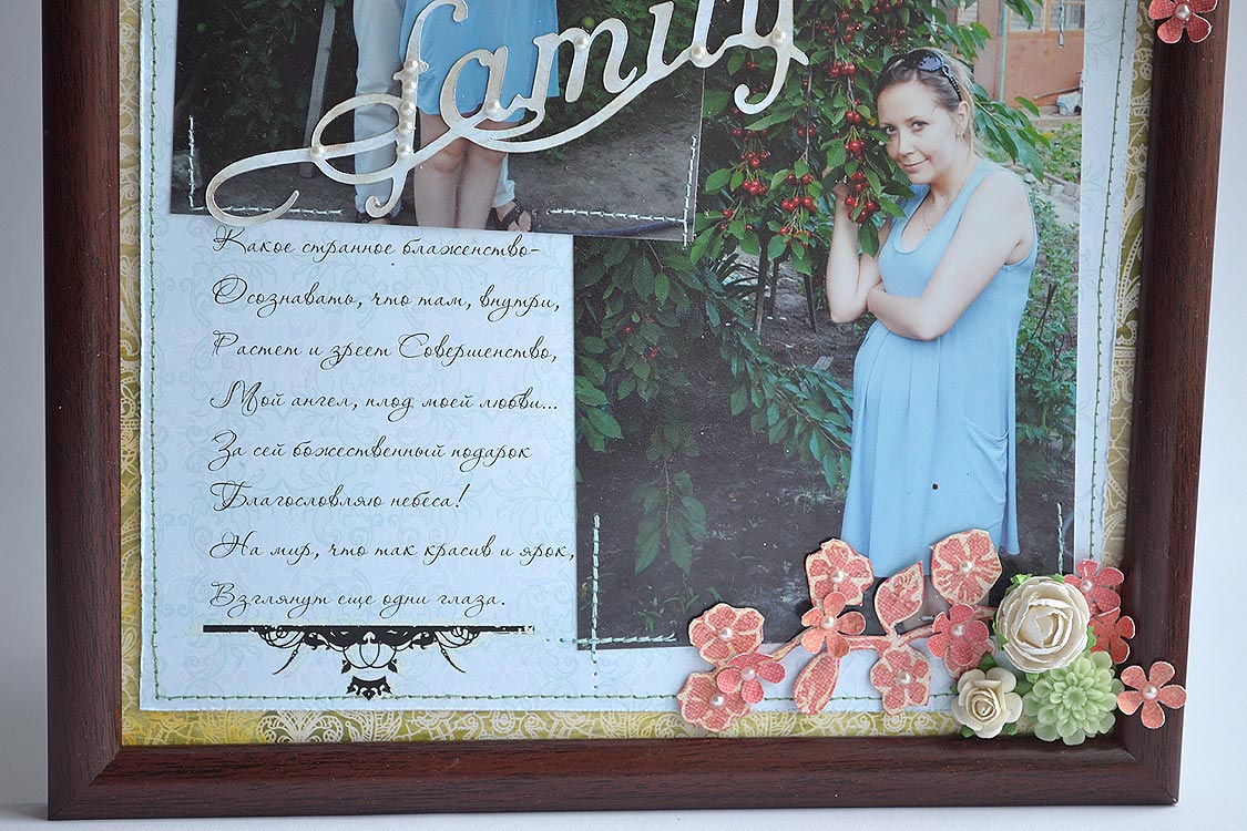 Девочки, сегодня хочу вам показать фоторамку, которую делала для друзей. Размер рамки 21*30 см, в неё замечательно помещается 2 фотографии 10*15, декор и небольшое стихотворение.