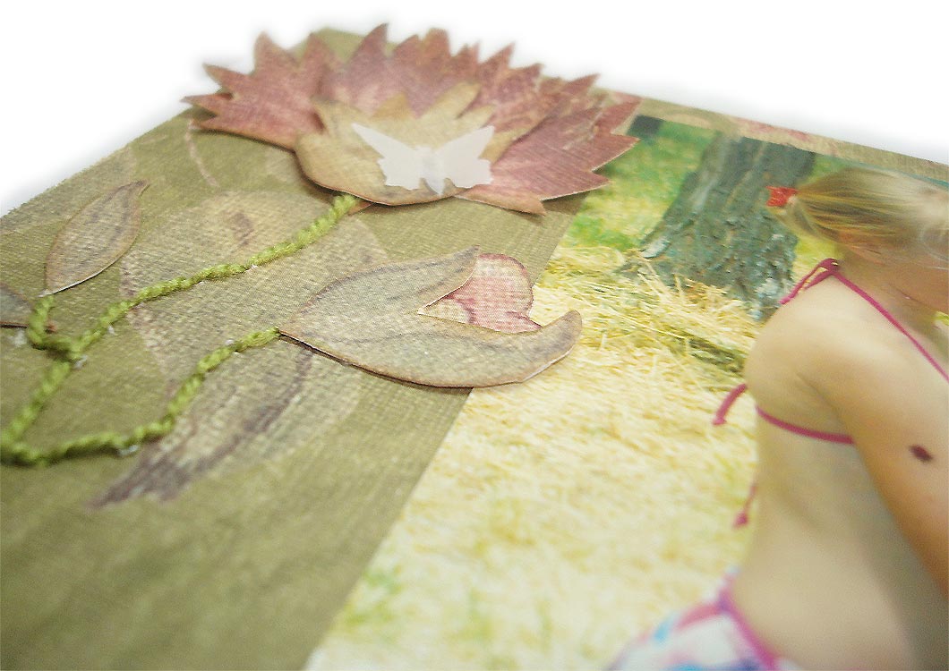 Коробочка для альбома была сделана из бумаги Мaking Memories, край крышки коробочки был сделан с помощью дырокола Martha Stewart и украшен цветами Prima и высечками.