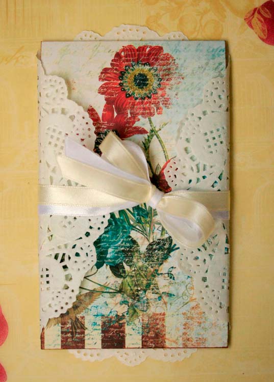 И заворачиваем открытку в салфетку, перевязыввя ленточкой.