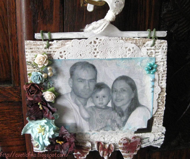 Продолжая работать с бумагой Прима, я решила заскрапить рамочку для фотографии. В ходе работы нашлась фотография, она была вклеена в рамочку и …