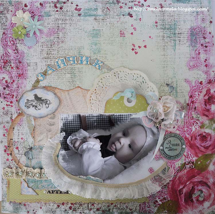 В дополнение к предыдущей, у меня появилась еще одна детская страничка. В ней мне захотелось отойти от привычных мне техник штампинга и …